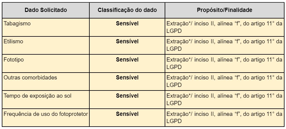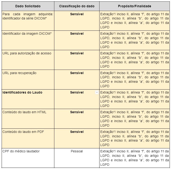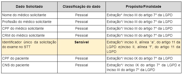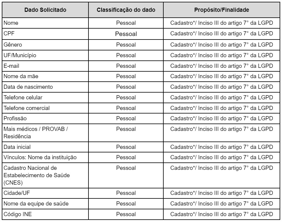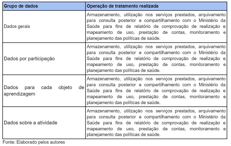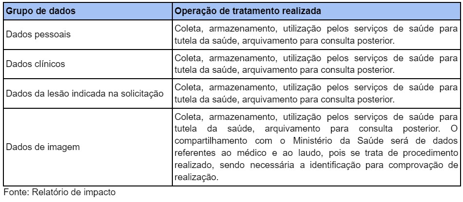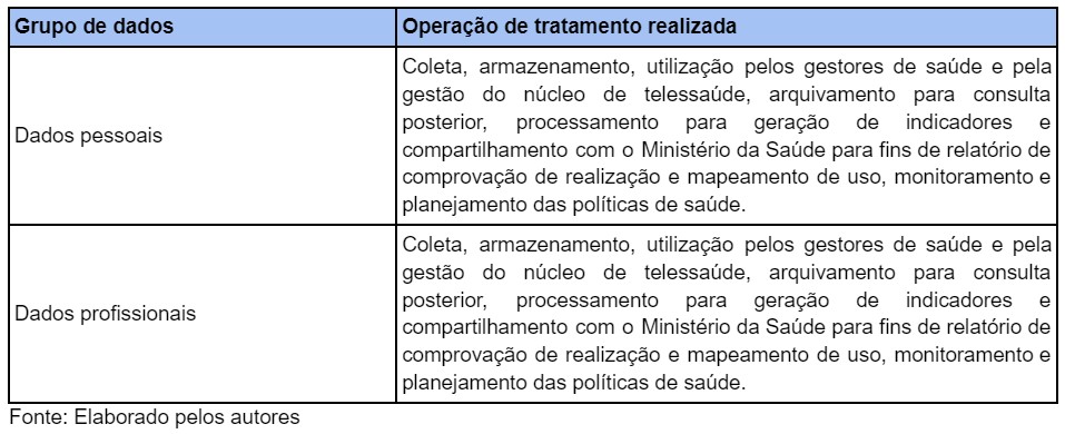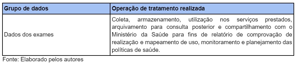 As operações de tratamento necessárias à prestação do serviço são citadas na tabela abaixo.