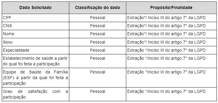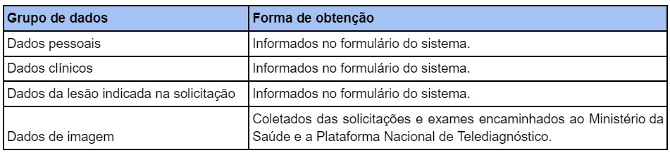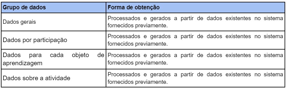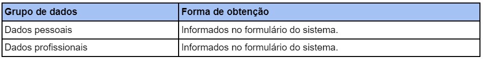 Os dados tratados são obtidos de acordo com o disposto na tabela abaixo.