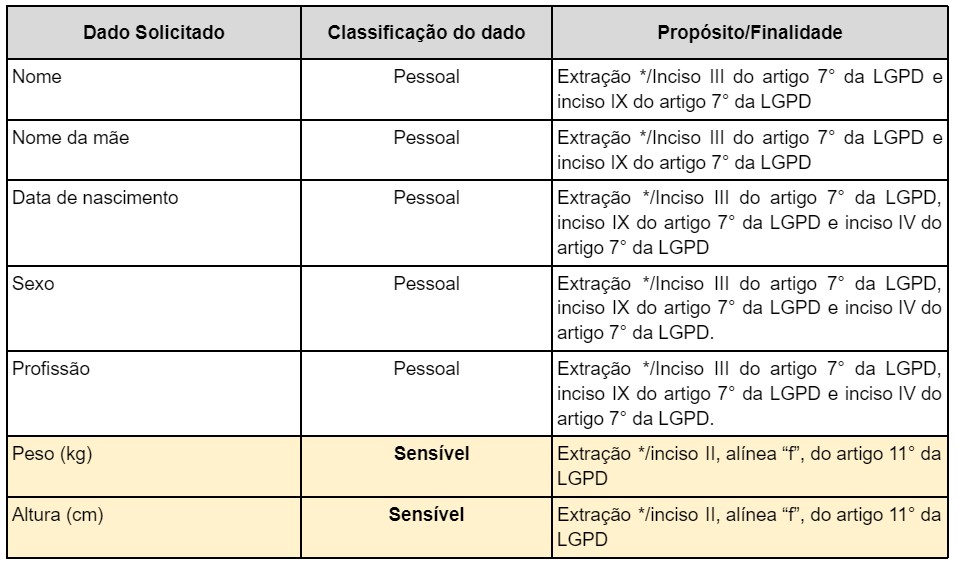 As finalidades devem atender às características específicas para sua adequação às orientações normativas da LGPD. Confira a seguir a lista de finalidades de cada dado pessoal tratado.