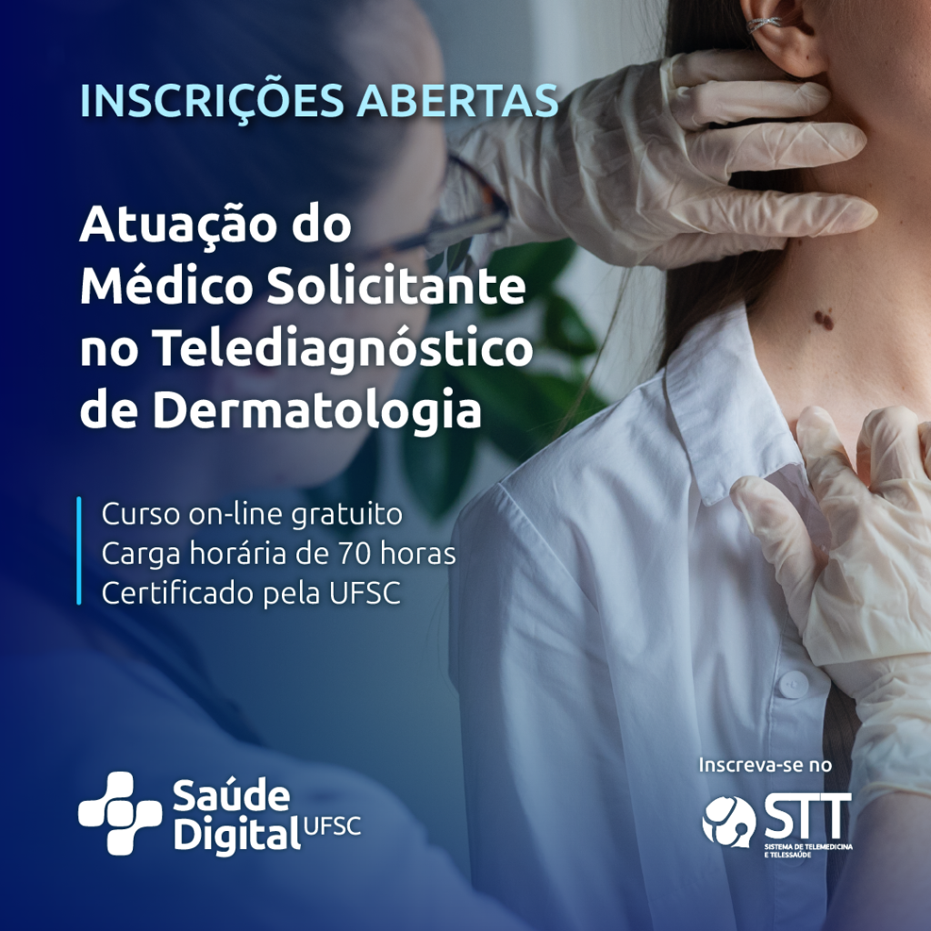 É com este foco que apresentamos o minicurso Atuação do Médico Solicitante no Telediagnóstico de Dermatologia – Turma 2025 A. A formação possui carga horária de 70 horas, é gratuito, totalmente online e autoinstrucional.